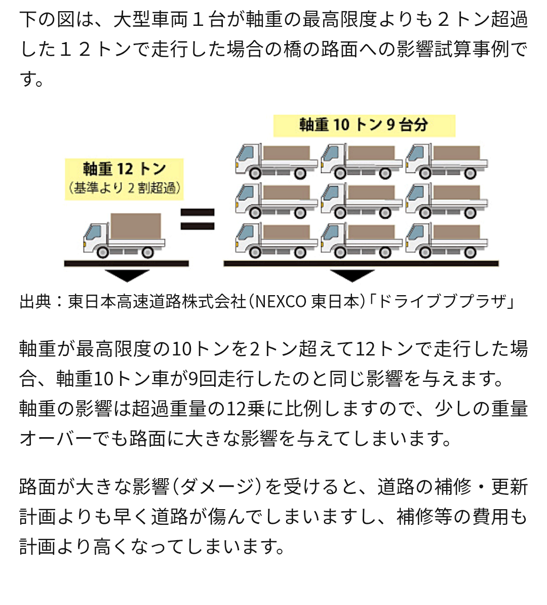 重量が原因で道路が傷むって話も、もう少し科学的に説明してほしいところ。