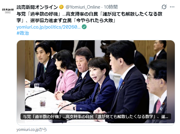 — 読売新聞オンライン (@Yomiuri_Online) January 9, 2026