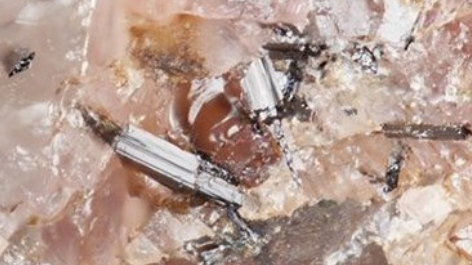 これらはバラ輝石を多く含む岩石中の石英の塊から見つかり、いずれも暗褐色の柱状結晶をしている。