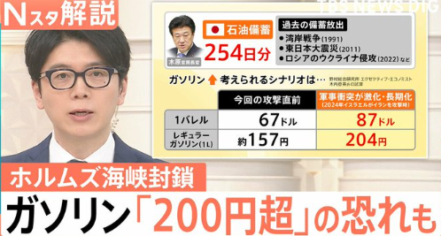 ホルムズ海峡は世界のエネルギー供給に影響が大きく、日本でもガソリン価格が上振れし、200円を超える恐れがあると示唆された。